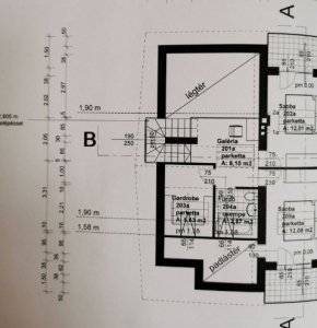 Az emeleten kettő hálószoba (mindkét szobából nyílik erkély), félszoba, fürdőszoba található.