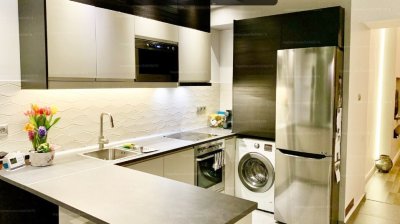 •Beépített, gépesített IKEA konyha (mikrohullámú sütő, főzőlap, sütő, mosogatógép)