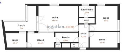 Kassai téren liftes csúsztatott zsalus társasházban, 74,5 m-es, első emeleti, jó elosztású, 2+2 félszobás, étkezős, loggiás lakás eladó.