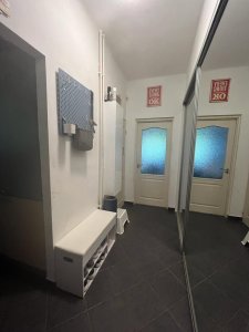 Az előszobába hatalmas, tükör/lakobell tolóajtós gardrobszekrény.