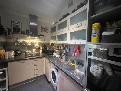 Konyhában beépitett villanytűzhely-hűtő-mosogatógép.