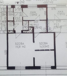 A lakás eredetileg 2 szobás volt, a 14,9 négyzetméteres szobát gipszkarton fallal 2 félszobává alakították.
