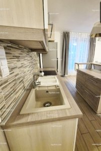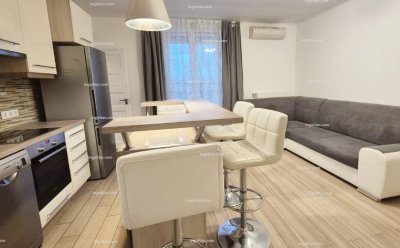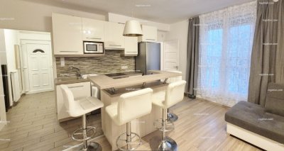 A lakás teljesen bútorozott, új gépesített konyhával (sütő, kerámialap, páraelszívó, hűtő, mikró, mosogatógép), valamint fürdőszobabútorral és mosógéppel felszerelt.