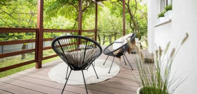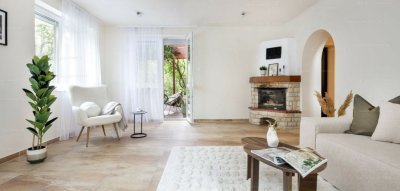 A nappali a sok ablaknak és kedvező tájolásnak köszönhetően szinte egész nap világos, kandalló teszi még kellemesebbé itt töltött időt. A nappali és a konyha teraszkapcsolattal rendelkezik, amely fölött csodás lilaakác lugas teremt romantikus hangulatot.