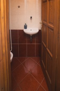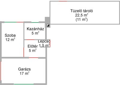 Konyha, fürdőszoba + két WC, étkező, garázs, előterek, lépcsők, fűtőhelység, 3 erkély, hatalmas terasz, a terasz alatt tüzelő tároló, a ház mögött kb. 4 m2 tároló.