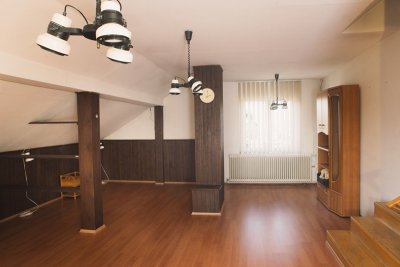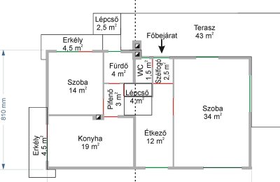 Nagy nappali, nagy háló és még négy kisebb 9,5-14 m2 szoba.