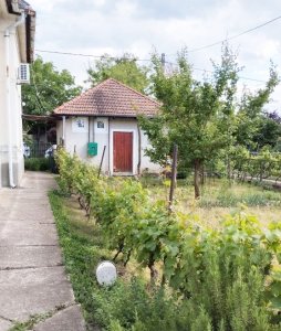 Az udvarban két különálló melléképület, garázs és egy kis szerszámtároló is van. A telken gyümölcsfák, bokrok, szőlőlugas, virágok és árnyas kiülő is helyet kapott. A locsolás fúrt kútról megoldható.