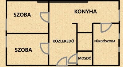 Elosztás: 2 szoba, konyha, fürdőszoba, WC, folyosó