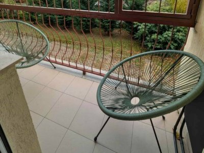 Közelben iskola,óvoda,spar található. A lakás 52 m2, újszerű két külön zárható szobával (mindkét szobához van erkély), és külön álló WC-vel rendelkezik.A fűtést cirkó kazán szolgáltatja a hűtésről klíma gondoskodik.A lakásban a WC kivételével minden helyiség a belső kertre néz a szomszédok csendesek.