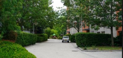 A lakáshoz tartozik egy saját udvari gépkocsibeálló, mely kötelezően megvásáolandó, elektromosan nyíló kapun keresztül közelíthető meg.