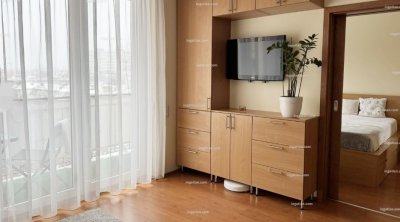Bútorozott, teljesen felszerelt, gépesített (mosógép, mosogatógép, hűtő, mélyhűtő, mikrohullámú sütő, kerámia főzőlapos tűzhely, hűtő-fűtő klíma, TV). Műanyag kétrétegű nyílászárók, redőnnyel és elhúzható szúnyoghálóval ellátva.